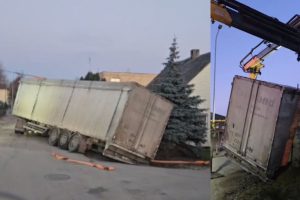 В Пакруоисе с дороги съехал тягач с чипсами, провели спасательную операцию