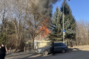 В Вильнюсе загорелся дом — на месте происшествия работают пожарные