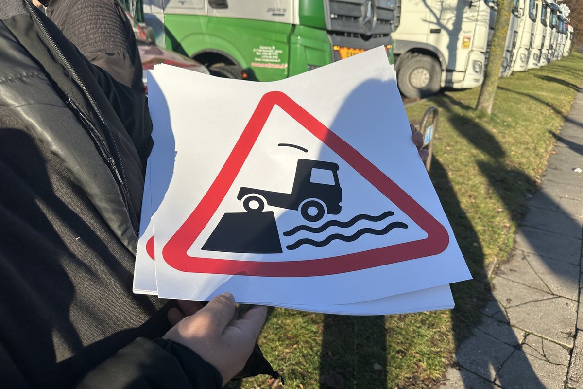 „Это не протест, а траур“, – сказал журналисту The Lithuania один из перевозчиков, который не пожелал назвать свое имя. „Мы приехали, чтобы вместе с другими выпить кофе, поскорбеть, ведь наши тягачи остались без прицепов, без работы. Можно сказать – флешмоб“, — продолжил он
