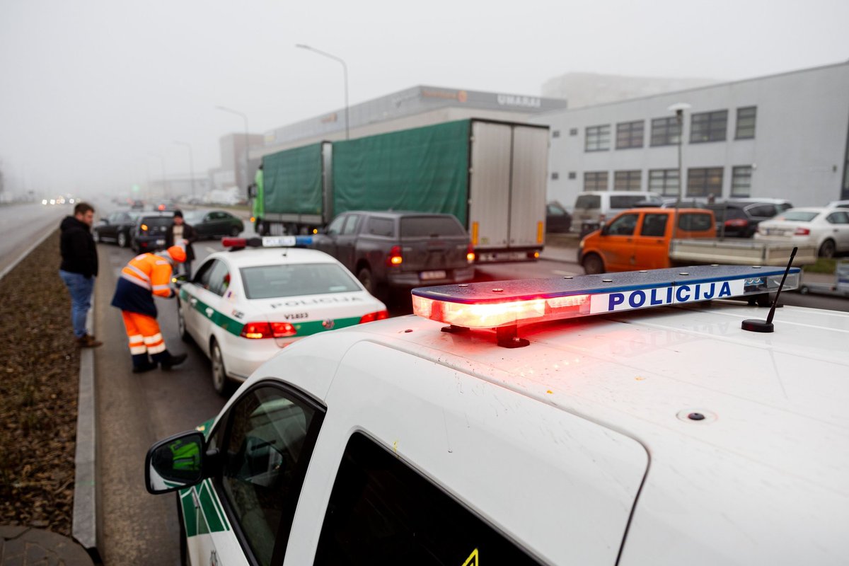 На ул. Укмергес столкнулись грузовик, два автомобиля BMW, электромобиль Volkswagen Up компании SPARK и пикап Toyota Hilux.