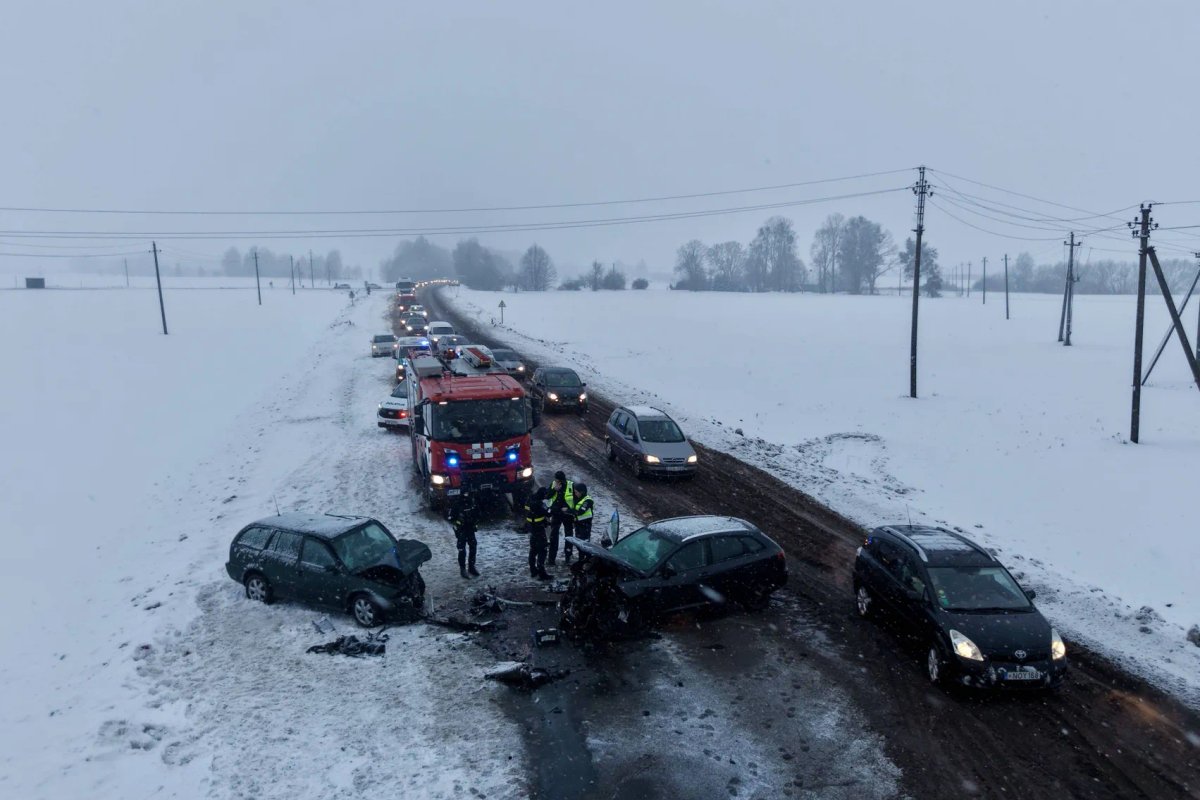 „В 7.15 ч. в Пренайском районе, в деревне Пабалишкяй, на Каунасском шоссе женщина (1973 г.р.) за рулем Seat Ibiza не выбрала безопасную скорость, не учла погодные условия, не справилась с управлением и выехала на встречную полосу, где столкнулась с автомобилем Škoda Octavia (водитель мужчина 1976 г.р.). В ДТП пострадали водители обоих авто и пассажир (1980 г.р.) автомобиля ŠKODA. Его передали в руки врачей“.