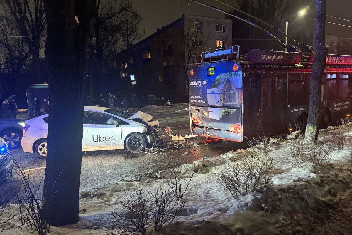 «Автомобиль врезался в троллейбус. Пострадавших нет», — сообщил дежурный офицер Вильнюсского полицейского участка.
