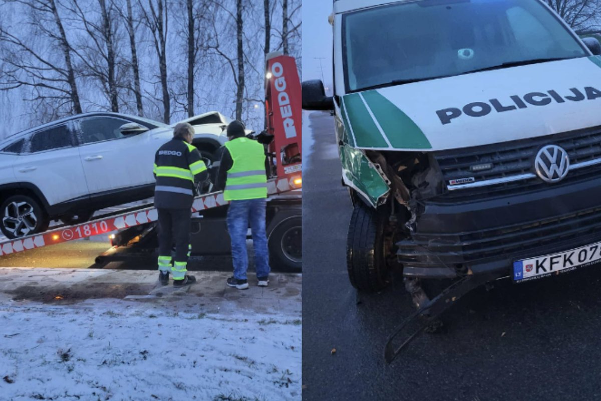 В Вильнюсе столкнулись полицейский Volkswagen Transporter и Hyundai. Пострадали двое сотрудников полиции, их доставили в больницу.