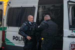 При побеге от полиции в Рокишкисе мужчина повредил три автомобиля и ранил сотрудницу полиции