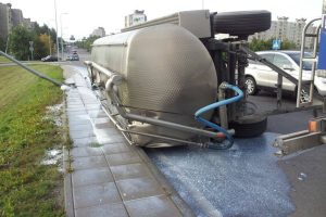 В Шакяйском районе перевернулся молоковоз, и вылилось 10 тонн молока